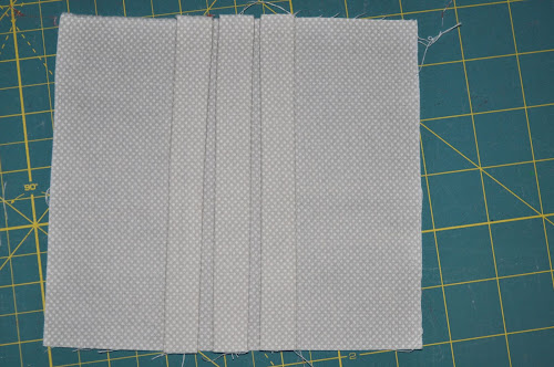 Stitch along the line. Then square the block to 5 inch square and stitch on both sides of the tucks leaving a 1/4 inch seam allowance.