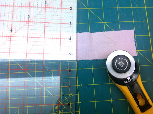Take a piece of solid fabric and cut a strip that is at least 13 in long by 1 3/4 in wide.