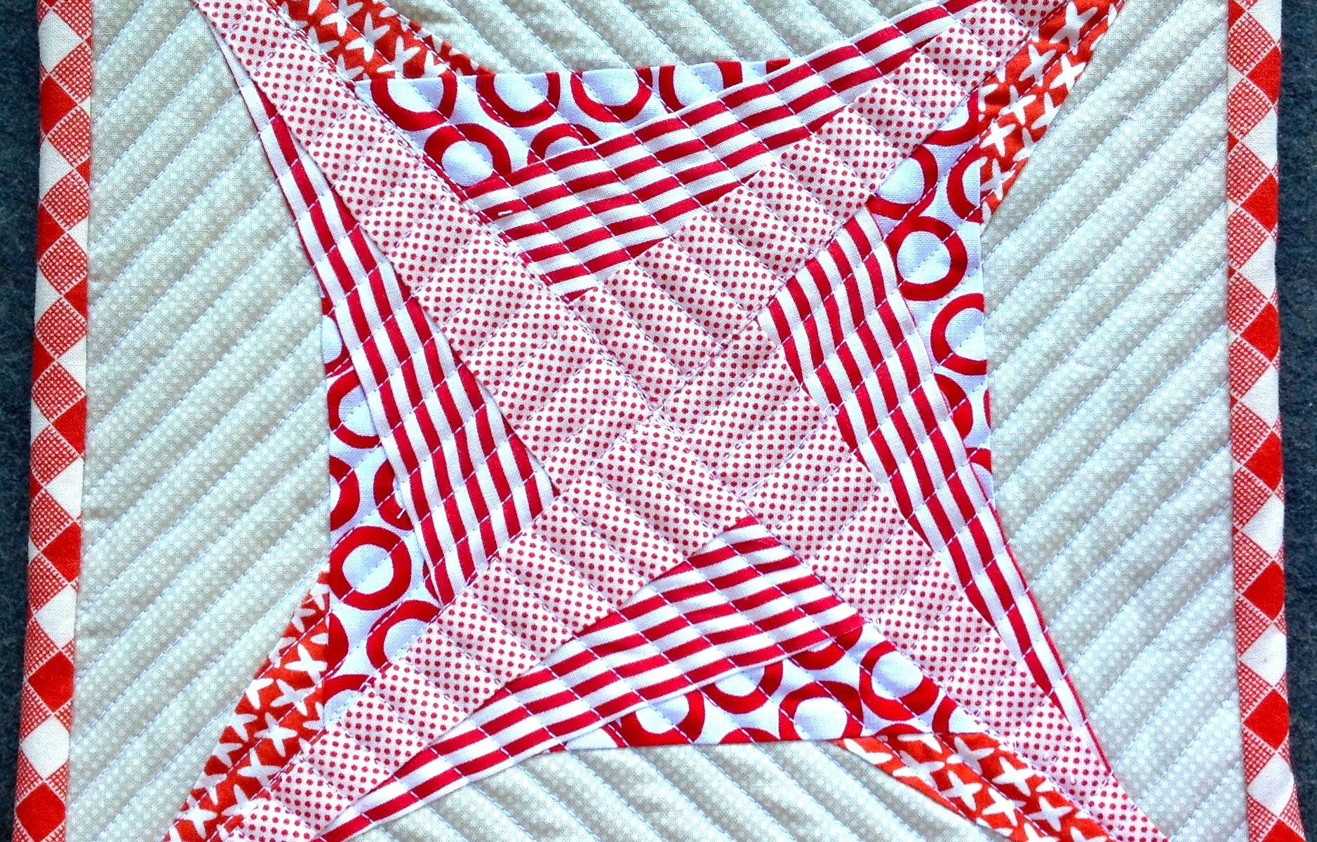 Piecing blocks are usually made into quilts but I have found another use for them as pot holders to give away to teachers, family members or friends.