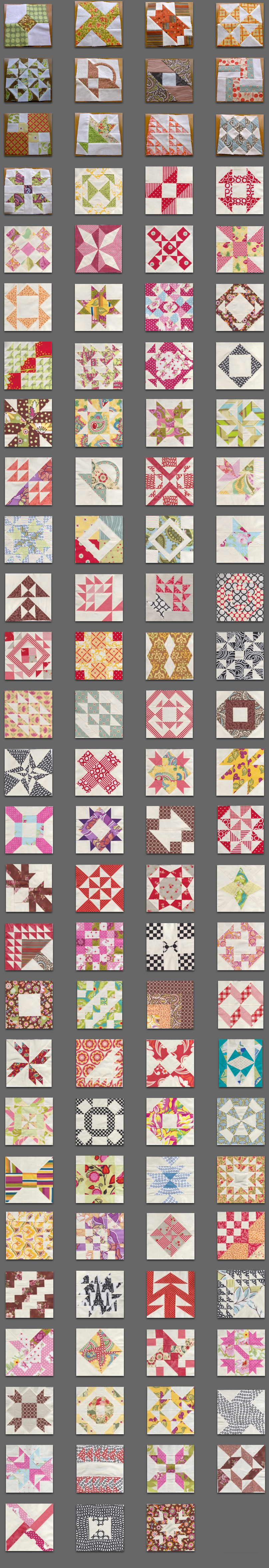 There are some things that I have learnt from making the 110 blocks in the book and which I explain below the ridiculously long graphic with photos of the majority of blocks.
