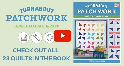 “Turnabout Patchwork. Simple quilts with a twist” is all about playing with blocks – making a block, slicing it up, and turning or repositioning the pieces to make a completely different block (sometimes two smaller blocks) to yield endless quilt tops.