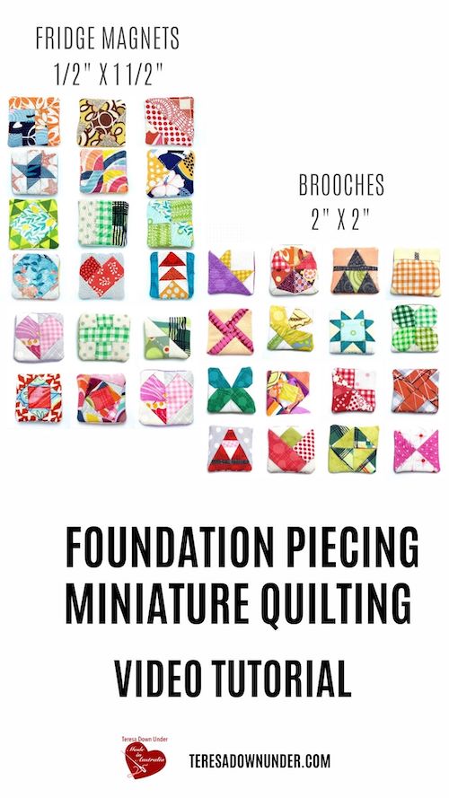 > TeresaDownUnder posted: ” These mini blocks are 1 1/2″ and 2″ finished. > They’re a lot of fun to make. You can use them as magnets or brooches or > anything that takes your fancy. The video demonstrates how to make the > blocks with foundation piecing. In such small sizes I fi” >
