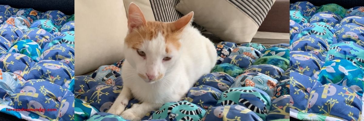 For this project I made a puff quilt as a cat’s bed and my cat loves it. I think he particularly loves it in summer because cotton is a lot cooler than his polyester store bought bed.