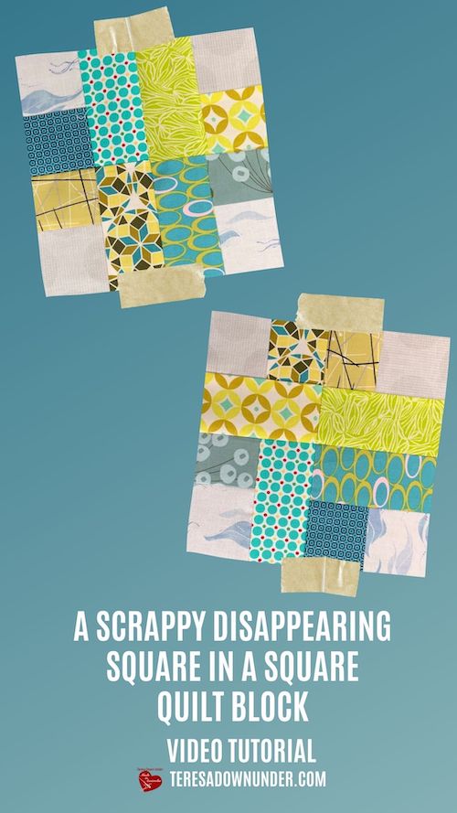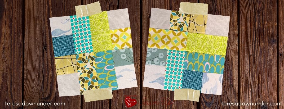 This time we’re making a square in a square scrappy quilt block. Basically it’s a square and some strips stitched around. My starting squares are the same size and so are my strips. But if you wanted to go really funky you can start with different size squares and strips.