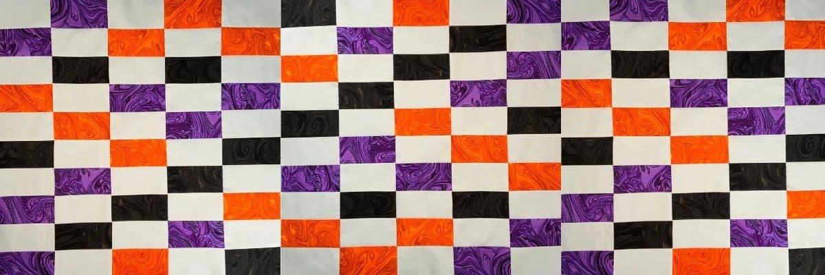 Mine alternates background and print fabrics and you can use jelly rolls or 2 1/2″ fabric strips for it.