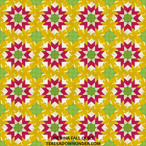 My Medina Fall Star mini quilt is a variation of the Marrakech Magic Star mini quilt. Both patterns are very common in Morocco.
