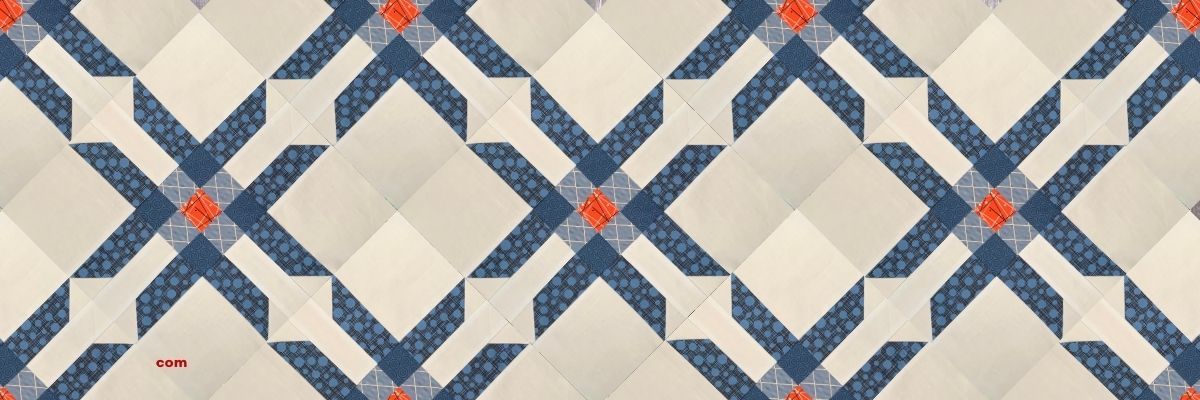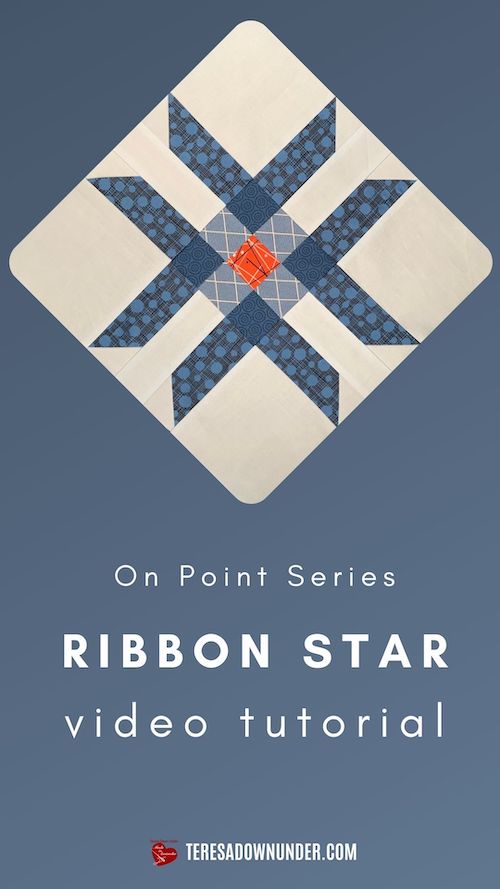 I’ve seen this block made in just 2 colours but I thought it’d look better in different shades of blue and a bright red in the centre.