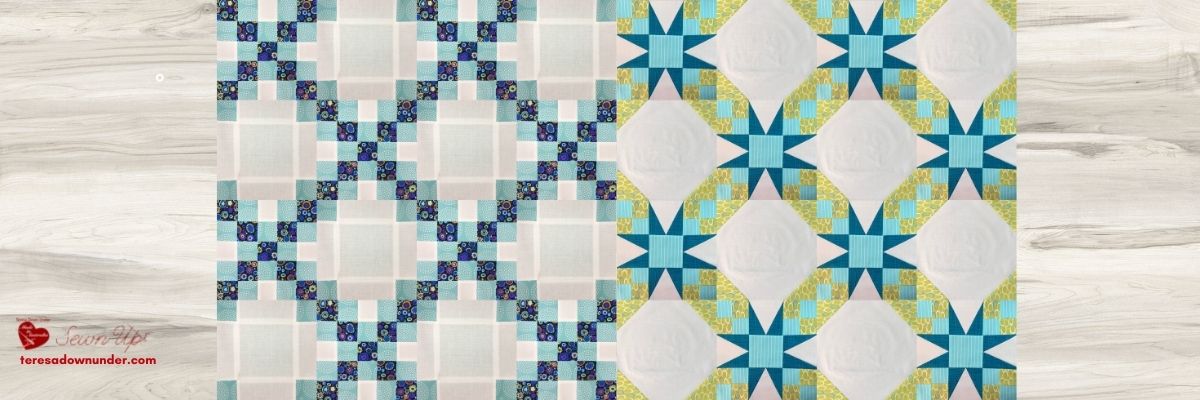 Tennessee waltz quilt is the combination of a 54-40 or Fight block and a snow ball block. When putting them together you get the illusion of curves.