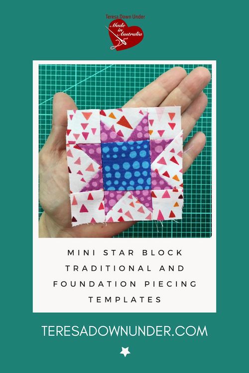 I chose to make this 3″ block with foundation piecing because it’s a lot easier to get an accurate block with foundation piecing than with traditional piecing when working with small sizes. Traditional templates however are also included in the download.