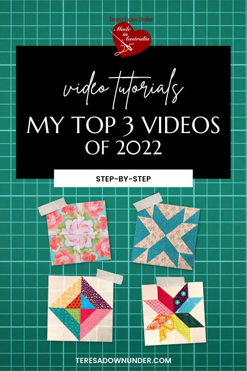 My top video tutorial in 2022 was my Four patch kaleidoscope quilt. The second most played was Blazing arrows. And the third one had two blocks in it: an 8 pointed star and a diamond block.
