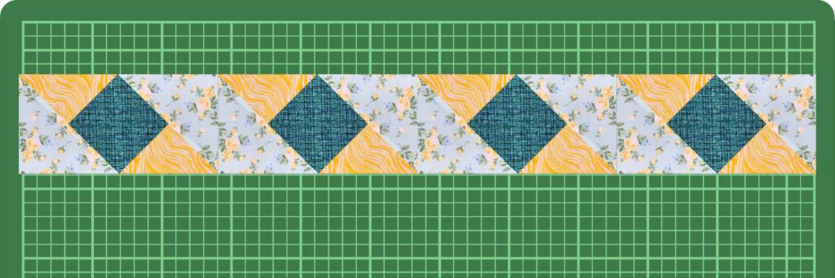 Let’s get ready for another border using a three quarter square triangle block. It’s just that easy!