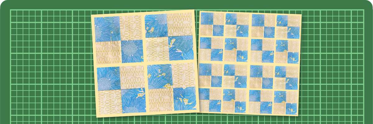 The uneven nine patch block I made a while back is a good candidate to turn into a disappearing block.