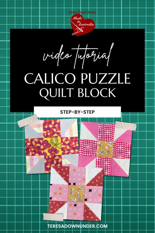 The Calico Puzzle block requires three fabrics: a light one, a medium one, and a dark one. Using different values creates a visually appealing design. You can use prints or solids to make it unique.