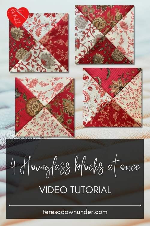 Hourglass blocks look great in any quilt and add strong movement without much planning. If you’ve ever avoided them because they seem slow to sew, here’s the good news: you can make four blocks at the same time with just two charm squares. It’s quick, tidy, and perfect for using those pre-cut packs sitting in your sewing room.