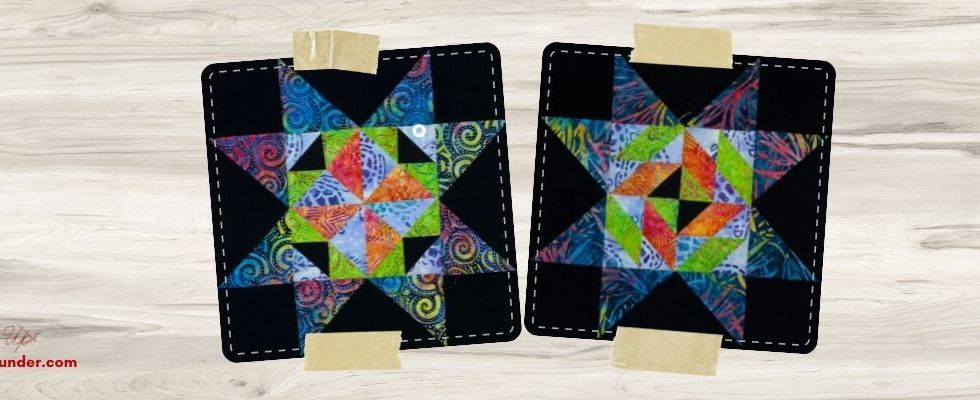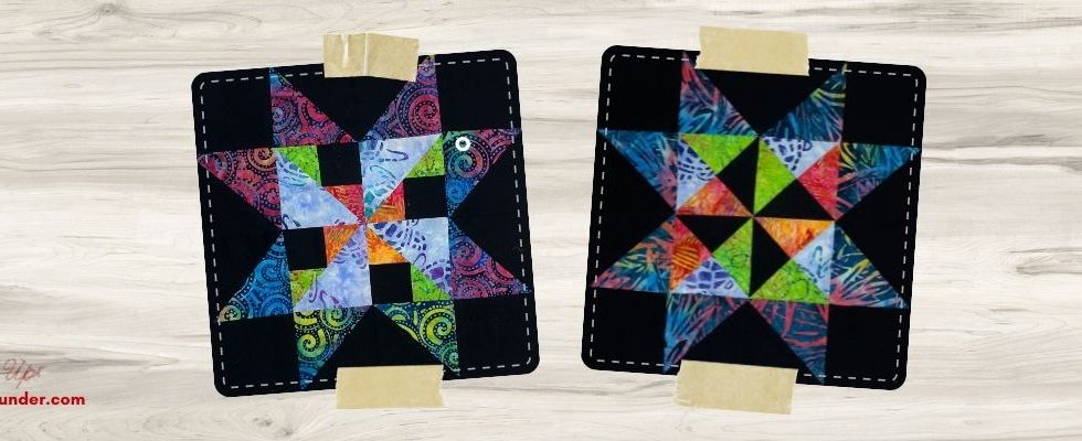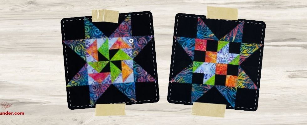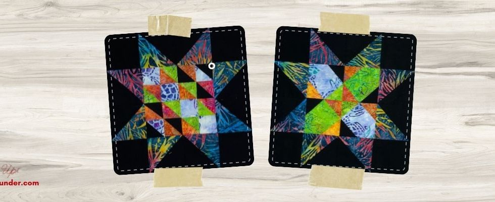 beginner quilt block easy quilt pattern free quilt pattern half square triangle HST strip quilt blockA new Hidden wells block with 5 strips of different widths