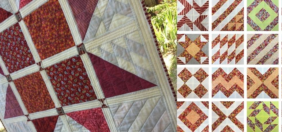 16 Half Square Triangles (HST) sampler quilt – free pattern