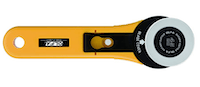 45 mm Olfa rotary cutter. I bought it in 2009 and it’s still going. (*)