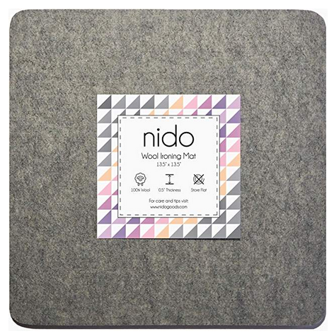 My ironing mat is 13 1/2″ x 13 1/2″, perfect for most block sizes.