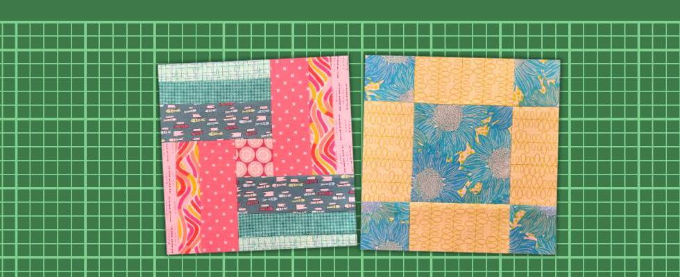 Two quick blocks: Woven logs and uneven nine patch quilt blocks