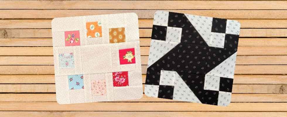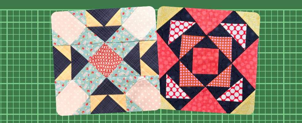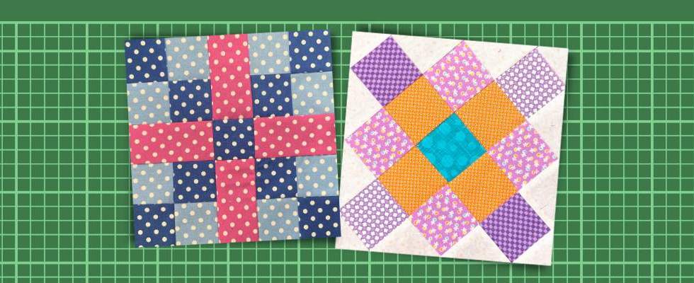 Two beautiful quilt blocks: Rambler and Swing in the centre