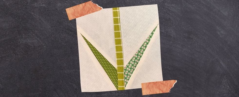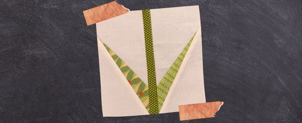 Stem and leaves quilt block with foundation piecing – Tulip factory quilt